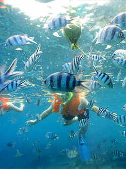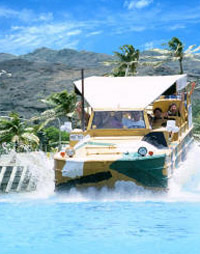 ダック、楽しかったです。 ハワイは何度か来ているのですが、そのたびにワイキキでみかけた黄色い車体が気になっていました。今回は念願叶ってダックにチャレンジ! 私達のドライバ−は既にシュノ-ケリングのマスクやライフジャケットを装備した状態で迎えに現れて、かなり笑えました。 ガーガ−笛を鳴らしながらワイキキの街を通り抜けた後は専用の入り江からゆっくりと水に入っていきます。激しく水しぶきを散らして入っていく姿を想像していたのでちょっと拍子抜けでした。 でもやっぱり一度は体験してみるとおもしろいと思います! [更新日:2007年6月] 参加ツアー:ダックツア−とマリンスポ−ツ(1種目)